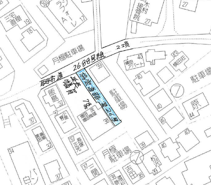 | 接道 | 北西 3m(幅員) 公道 東南 2m(幅員) 私道 12m(接面) |